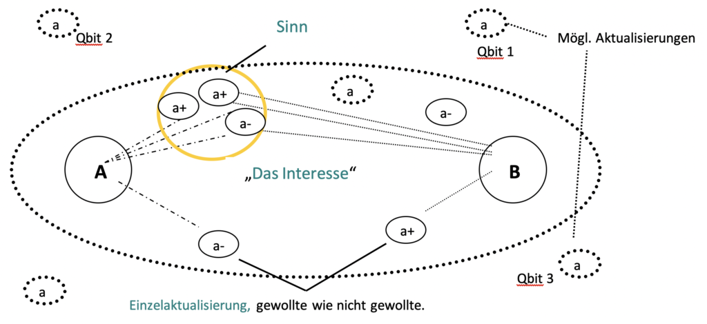 Eine Wahrnehmung im Sinne einer Entnahme von Dateninhalt (qbit) mwelt durch Denken und Fühlen, die gewollt wie ungewollt erfolgen kann.